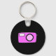 Bright Pink Camera. On Black. Key Ring