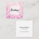 Bright Pink Faux Glitter Zebra Pattern White Frame Square Business Card