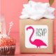 Simple bright pink silhouette of a flamingo against plain white square sticker. You can change the background colour. If you want to personalise, you can change the RSVP text message. Try FF0066 for the bright hot pink font colour. Black tall skinny font. The entire flamingo silhouette is available if you reduce the size of the bird shape image and change the placement.