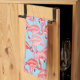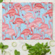 Bright Pink Flamingos On Blue Tea Towel
