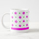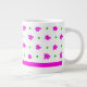 Bright Pink Floral Pattern, Green Polkas on White Large Coffee Mug