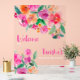 Bright hot pink floral script bridal shower welcome transparent sign featuring pretty hand painted bold pink, orange red blooms flowers and greenery. Perfect for fall boho themed bridal shower garden party. With a modern script typography.