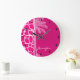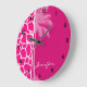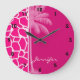 Bright Pink Giraffe Animal Print; Summer Palm Large Clock