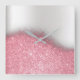 Bright Pink Glitter Silver Grey Minimal Metallic Square Wall Clock