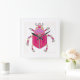 Bright pink horned beetle wall clock that is funky, cute, and oh, so artsy! Fully customisable to suit your needs and preferences, this jewelled coloured horned beetle is sure to get all the smiles, oohs and aahs from all onlookers. Whimisically designed, hand drawn, beautifully painted, one-of-a-kind art separates this white background wall clock from all the others. Order yours today!