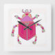 Bright Pink Horned Beetle Wall Clock