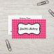 A bright pink houndstooth pattern decorates this business card. Customise this retro style business card to suit your needs. The design is from original art. Use this professional business card for a bakery, catering business, boutique, alterations, tailor, gourmet foods, home decor, cosmetologist, hair stylist, fashion, clothing, accessories, jewellery, antiques, cakes, candy, hair stylist, nail salon, fashion, salon, spa, musician, painter, etc...