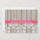 Pretty and trendy rustic style monogrammed mason jar bridal shower invitations with a bright pink hydrangea flower and a wooden fence and antique damask pattern lace background and stitched hot pink and fuchsia ribbon. These invites can be personalised with the initials and monogram of the bride and groom on the mason jar. These invites are perfect for a country, farmhouse, garden party or barnyard style wedding, couples or bridal shower. Designed by Chrissy H. Studios, LLC.