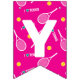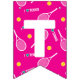Awesome vivid pink bunting flags for tennis player. Pattern ' I love tennis' available as fabric and many everyday and tennis themed party items. Great for tennis enthusiasts