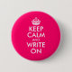 Bright Pink Keep Calm and Write On 6 Cm Round Badge