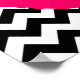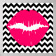 Bright pink puckered lips against black and white chevron or zigzag pattern.
