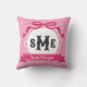 Bright Pink Reverse Greek Key Bow Monogram Cushion