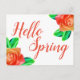 Bright and bold floral postcard featuring pink roses and the phrase "Hello Spring".