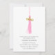 Modern graduation party invitation template card featuring an illustration of a pink tassel with a hanging faux gold foil charm of the word "GRAD". Personalise with your text on front and add the graduate's photo on the back of the card or remove photo and keep it simple and modern. Great for both high school and college graduate. Original artwork ©Marisu Valencia