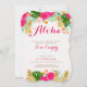 Aloha! Come away to paradise for this tropical bridal shower invitation with bright pink tropical flowers, green foliage and pineapples. Rattan back page.