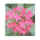 This awesome notepad features a detailed photograph of a bunch of beautiful bright pink tropical flowers, surrounded by dark green leaves. These pretty flowers form a circle in the middle. The photo was taken using macro photography for a detailed result.