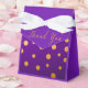 Elevate your event with these stunning Bright Plum Purple and Gold Favour Boxes. These elegant favour boxes are designed with a rich plum purple background adorned with luxurious gold polka dots, creating a sophisticated and vibrant look. Ideal for upscale parties, anniversary celebrations, purple-themed events, birthdays, weddings, tea parties, baby showers, bridal showers, fundraiser occasions, and more. Each box is beautifully finished with a crisp white ribbon and "Thank You" elegantly scripted in gold, making it a perfect gesture of appreciation for your guests. Crafted from high-quality materials, these favour boxes are both durable and stylish, ensuring your favours are presented in the most charming way. Whether you're hosting a lavish wedding, a chic bridal shower, or a classy birthday party, these favour boxes will add a touch of elegance and fun to your event. Their striking colours and exquisite design make them a trendy must-have this year, sure to impress and delight your guests. Add a splash of vibrant elegance to your special occasion with these Bright Plum Purple and Gold Favour Boxes.