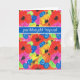 A colourful Birthday Card with 'Happy Birthday' in Welsh, with scarlet, orange and pink poppies and bright blue cornflowers, from a watercolour painting by Judy Adamson.