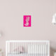 Vintage art butterfly fairy with a crown and a wand with a bright pink polka dot background as decorative wall art.