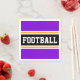 This sporty, athletic design features bold FOOTBALL text inside a highlighted wide centre black stripe with white and yellow pinstripes against bright purple outer stripes. The text can be personalised.