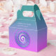 A bright and beautiful purple and teal, almost turquoise, spiral on a teal-to-pink gradient, canvas-textured background. This digital image is customisable, including the background.