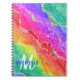 Bright Rainbow & Gold Faux Glitter Agate Monogram Notebook