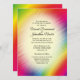 Beautiful rainbow colour design with accent on green. Put the first names of the couple on the one side. Add all information including when and where the ceremony is and the time and place of the reception.
