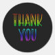 Bright Rainbow Whimsical Thank You Black Classic Round Sticker