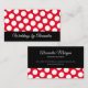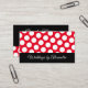 Create your own white polka dot pattern business cards with black rectangle accent areas for the text. There is room for more contact information on the back side. Customisable red background.