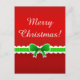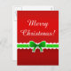 Beautiful holiday postcard with red pattern, green laced bow and customisable text.