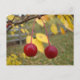 Two bright red shiny crab apples and golden leaves in the autumn harvest Thanksgiving season. Perfect gift for the cook, gardener or nature lover. You may also add your own text to customise.