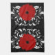 Bright Red Gerbera Daisy on Black Tea Towel