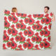 Bright Red Oriental Poppies Pattern on White Fleece Blanket