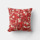 Bright Red Pillow with White and Pink Flowers