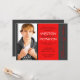 Bright Red & Pinstripe Grey Photo Graduation Invitation
