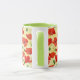 A chic Coffee Mug with a Green lip and handle and Scarlet Field Poppies on a Cornfield Yellow background (excellent gift for anyone with an August Birthday or named Poppy). From a hand-painted paper collage by Judy Adamson, this bright, floral design is part of the Posh & Painterly 'Poppy Fields' collection.