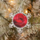 Bright Red Rose Flower Beautiful Floral Snowflake Pewter Christmas Ornament