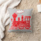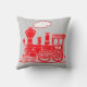 Original bright red stream train graphic art boys personalised pillow. A perfect gift for a young or wiser train enthusiast, model train builder or trainspotter. Customise with your own short name on the boiler plate.