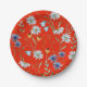 Bright Red Summer Floral Paper Plate