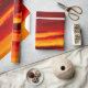 This design features an image of clouds in various shades of yellow and orange against a red background. It is a beautiful sunset scene.