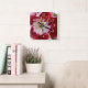 bright red tulip square wall clock