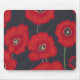 Painting of a bright red tulips on a black background, in acrylic, printed on mousepads.