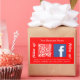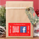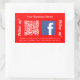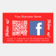 A catchy bright red background. Personalise and add your business name, your own qr code to your Facebook account and a text. White text. With the text x2: Follow us!