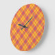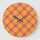 Bright Red Yellow Blue Plaid Round Wall Clock