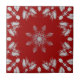 Bright rich red silver star flower geometric ceramic tile