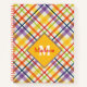 Personalise this colourful plaid notebook with a name and monogram for a stylish back to school gift. Choose a paper style and colour of the spiral binding to customise it even further, See other coordinating items in this design collection at KidsUnique on Zazzle.