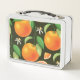 Bright seamless orange pattern design. metal lunch box