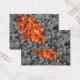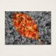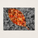 A selectively coloured autumn photograph of fallen crepe myrtle leaves, with a gold-framed leaf shape of bright red, orange, and yellow against a black and white background.