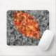 A selectively coloured autumn photograph of fallen crepe myrtle leaves, with a gold-framed leaf shape of bright red, orange, and yellow against a black and white background.