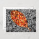 A selectively coloured autumn photograph of fallen crepe myrtle leaves, with a gold-framed leaf shape of bright red, orange, and yellow against a black and white background.